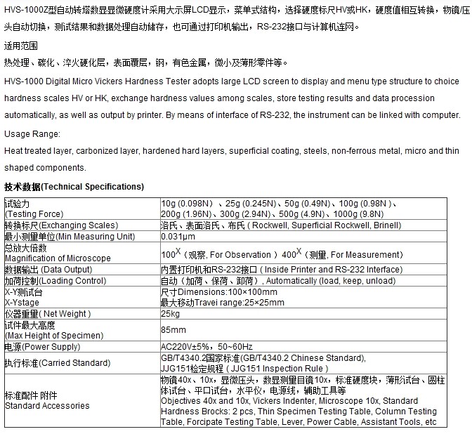 HVS-1000型数显显微硬度计